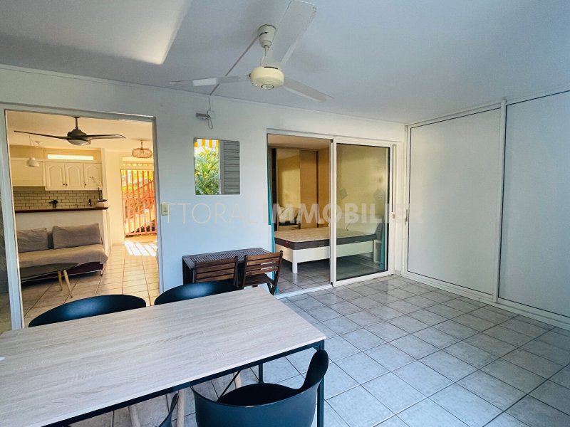 Située à près de la plage de trou d'eau, dans une résidence calme et recherché, ce charmant appartement meublée de type T2 offre un cadre de vie agréable avec son jardin privé et arboré.