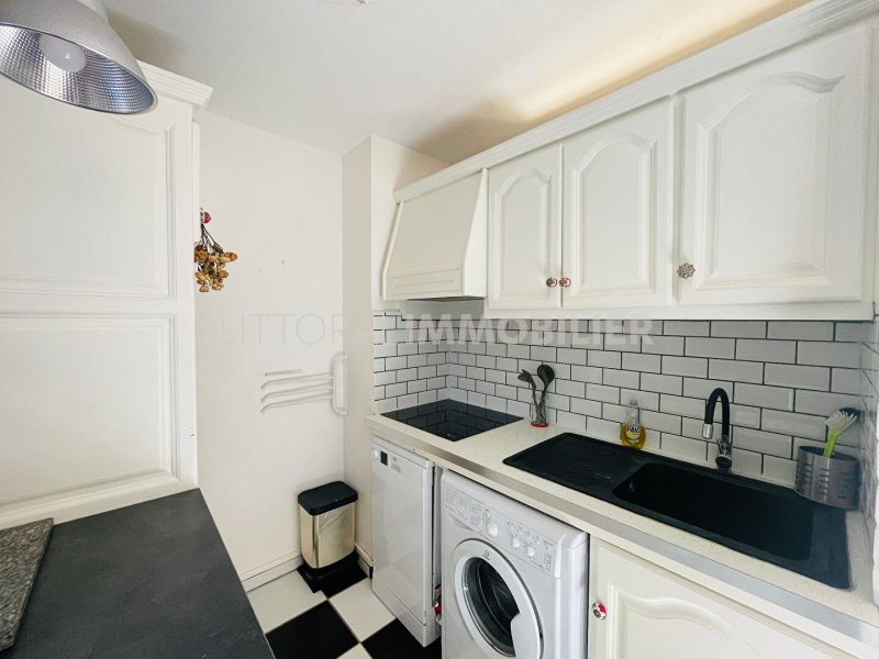 Cet appartement T2 meublé situé au rez-de-chaussée comprenant une entrée, une cuisine ouverte sur le séjour, une chambre, une salle d'eau avec un WC.