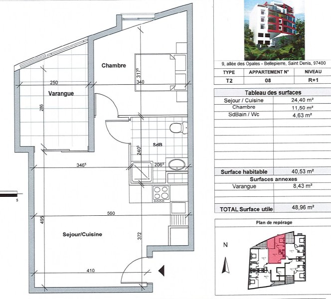 A proximité immédiate du CHU de Bellepierre, L'agence RUN INVEST vous présente ce bel appartement F2 de 40,83m2. Au 1er étage d'une résidence sécurisée, orienté sur la mer ce logement saura vous séduire. Composé d'une entrée, un séjour, une cuisine ouverte, une chambre, une salle de bains-WC et une varangue, vous disposerez également d'une place de parking en sous-sol de la résidence. Située dans une rue calme à proximité immédiate du CHU, l'appartement propose une orientation côté mer. Vendu Libre - La chambre dispose d'un placard et de la climatisation. Photos non contractuelles Tarif de 134 000EUR ( Honoraires inclus à la charge du vendeur) Montant des charges annuelles : 1548EUR Montant de la Taxe Foncière : 1307EUR 22 lots