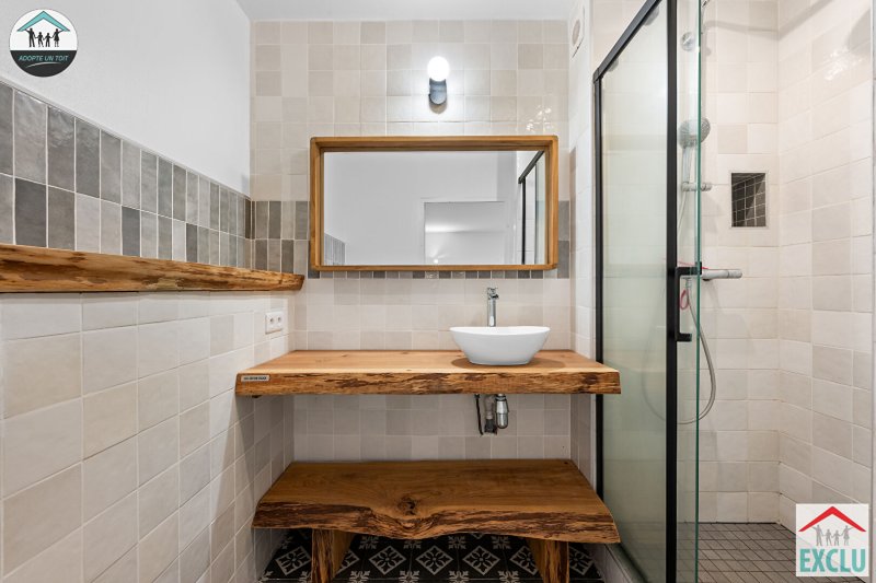 Une salle d'eau fonctionnelle avec WC.