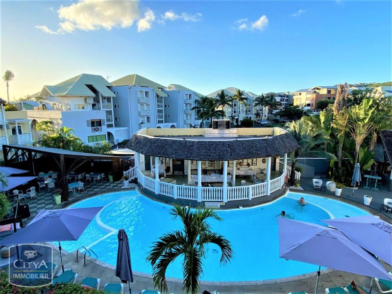 - 2e niveau : séjour lumineux avec coin cuisine, balcon vue piscine, salle d'eau avec WC, 2 balcons