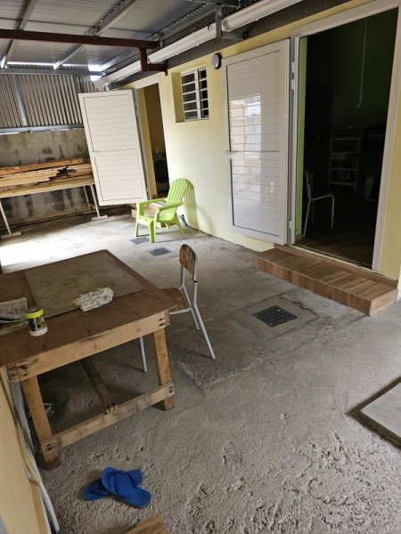 L'arrière de la maison est composée d'un abri, d'une cuisine, d'une salle de douche avec wc et d'une pièce de rangements.