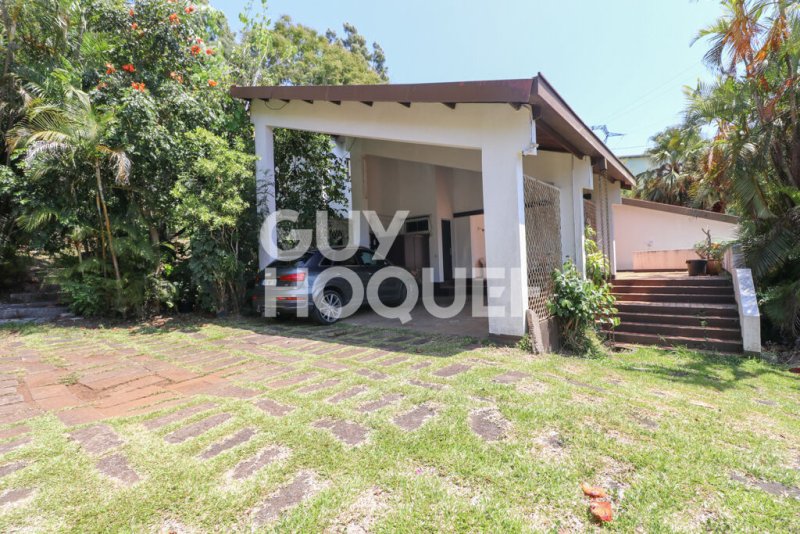 Au coeur du très recherché quartier de Bellepierre, à moins de 10 minutes du CHU, cette propriété singulière s'étend sur une parcelle d'environ 4 870 m², offrant un cadre verdoyant, calme et sans vis-à-vis, avec une vue dégagée sur l'océan.