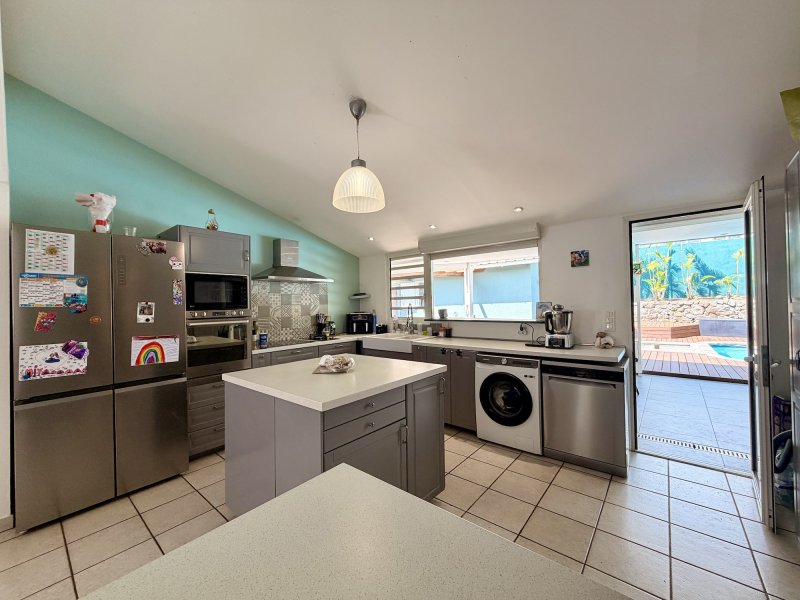 Si vous m'adoptez, je vous offrirai le bonheur rare d'une vie de plain-pied de plus de 218m2 de surface utile, douce et fluide, où chaque pièce s'ouvre naturellement sur les moments de partage. Si vous m'adoptez, je deviendrai le cocon de votre famille. Je vous propose quatre chambres, dont une jolie suite parentale pour préserver votre intimité, pendant que chacun trouve sa place dans des volumes généreux et confortables. Si vous m'adoptez, vos journées commenceront dans une atmosphère paisible et se termineront sous ma belle varangue, tournée vers la piscine et le jardin arboré.Plus de 650 m2 de terrain pour voir grandir les enfants, organiser des barbecues, célébrer les anniversaires ou simplement savourer la douceur de vivre. Si vous m'adoptez, mon espace de vie accueillera vos plus beaux souvenirs : un salon chaleureux, une salle à manger conviviale et une cuisine ouverte, parfaitement pensée pour relier l'intérieur à l'extérieur, entre maison et varangue, entre quotidien et vacances. Si vous m'adoptez, je vous offrirai aussi un atout précieux : un studio indépendant, idéal pour recevoir famille et amis... ou générer un revenu locatif complémentaire en toute liberté. Si vous m'adoptez, vous pourrez stationner jusqu'à trois véhicules en toute sécurité sur ma parcelle, derrière mon portail électrique. Si vous m'adoptez, vous profiterez d'un environnement calme et résidentiel, au coeur d'un lotissement privé, à proximité immédiate des écoles, collèges, lycées et des axes routiers principaux pour simplifier votre quotidien. Si vous m'adoptez, je vous promets une vie confortable, fluide et harmonieuse... Une villa pensée pour la famille, les rires autour de la piscine, les dimanches sous la varangue et les souvenirs qui se construisent année après année. Je n'attends plus que vous. Mon prix : 682 500 EUR Honoraires d'agence inclus, à la charge du vendeur. Pour en savoir plus sur les risques naturels : www.georisques.gouv.fr Retrouvez nos maisons, appartements et terrains en vente ou en location à La Réunion (974) sur notre site ou en agence.