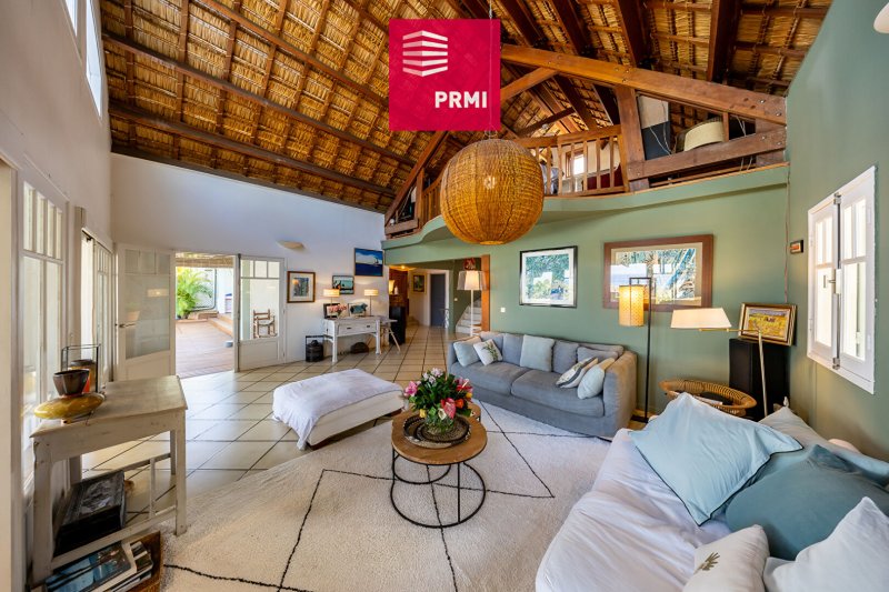 Pièce à vivre traversante de 72 m² avec toit cathédrale en chaume